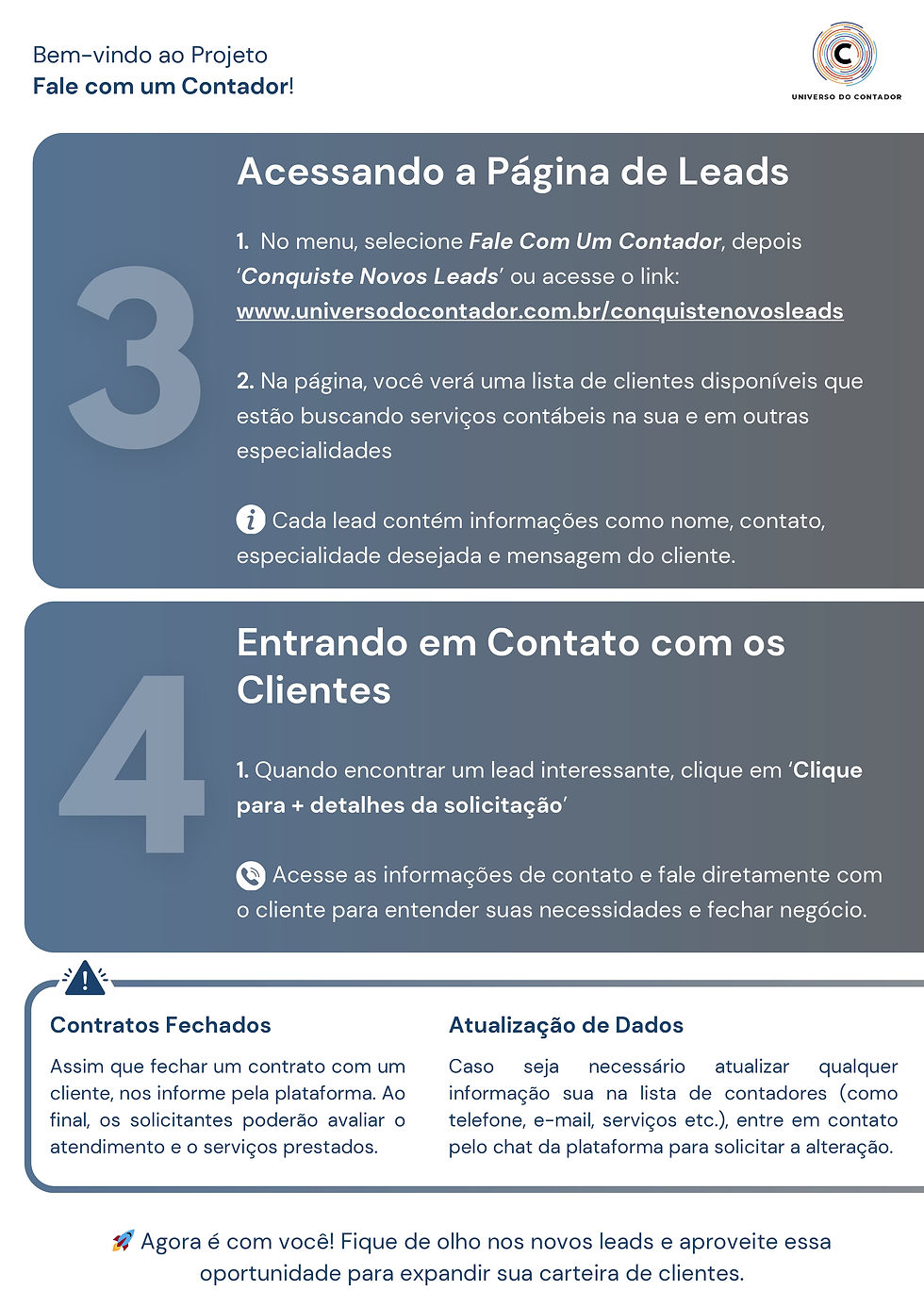 Após a aprovação, seu perfil estará disponível para empresas e empreendedores que buscam serviços contábeis, tornando-o acessível e pronto para ser encontrado por novos clientes.